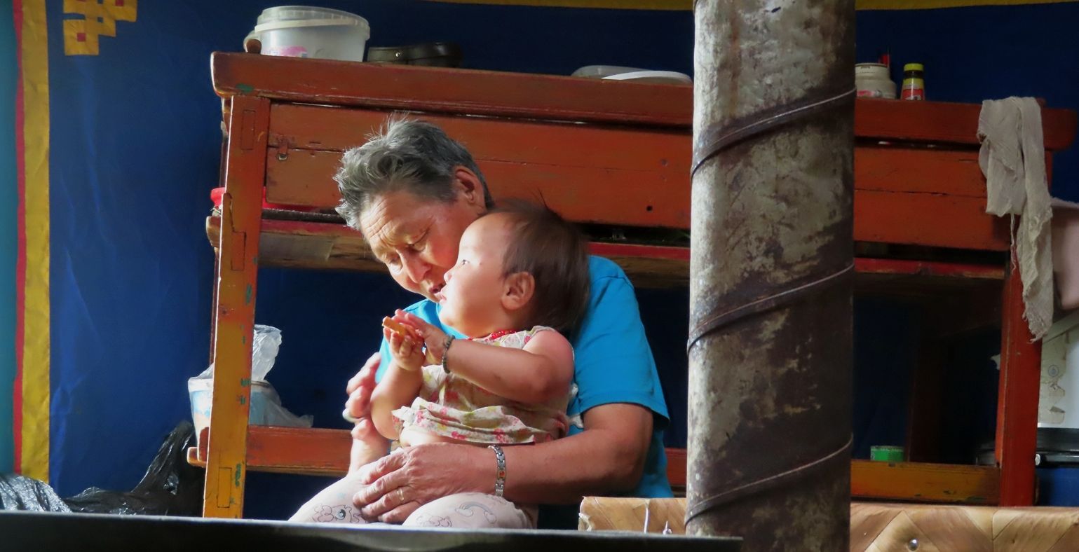 Die Alte gibt der Kleinen Schutz, Geborgenheit, Orientierung